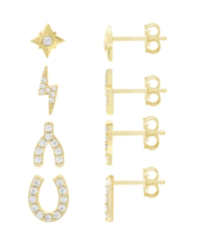 ESSENTIALS High Polished And Cubic Zirconia Multi Motif Mix Match 4 Stud Earring Set, Gold Plate In Gold-tone