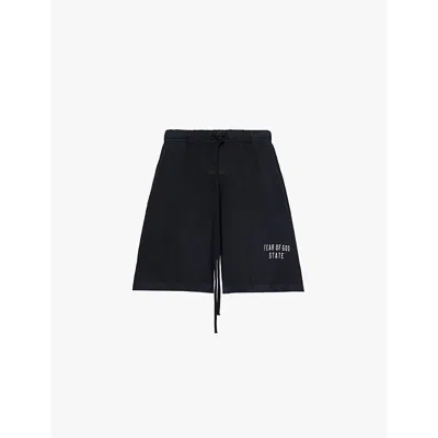 ESSENTIALS Logo Print Drawstring Shorts In Black
