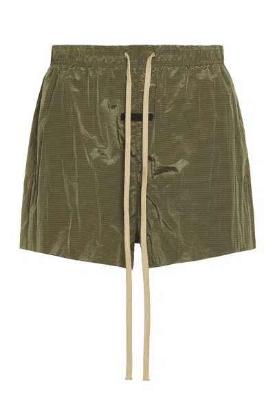 Fear of God ESSENTIALS Ripstop Running Short in Military - Army. Size M (also in L, XL). Self: 100% nylon Lining: 100% polyester. Made in China. Hand wash. FALF-MF9. 160BT244455F. About the designer: