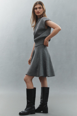 41% polyester, 29% viscose, 24% metallic, 6% polyamide Pull-on styling Hand wash Imported Icing Knit Flared Mini Skirt by Essentiel Antwerp in Grey, Women's, Size: Largearge, Polyester/Polyamide/Viscose at Anthropologie