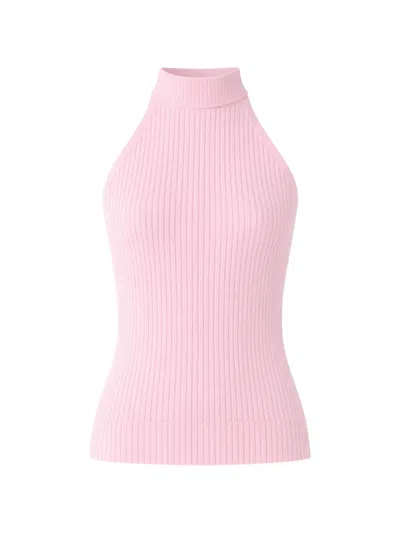 pink ribbed knit high neck sleeveless