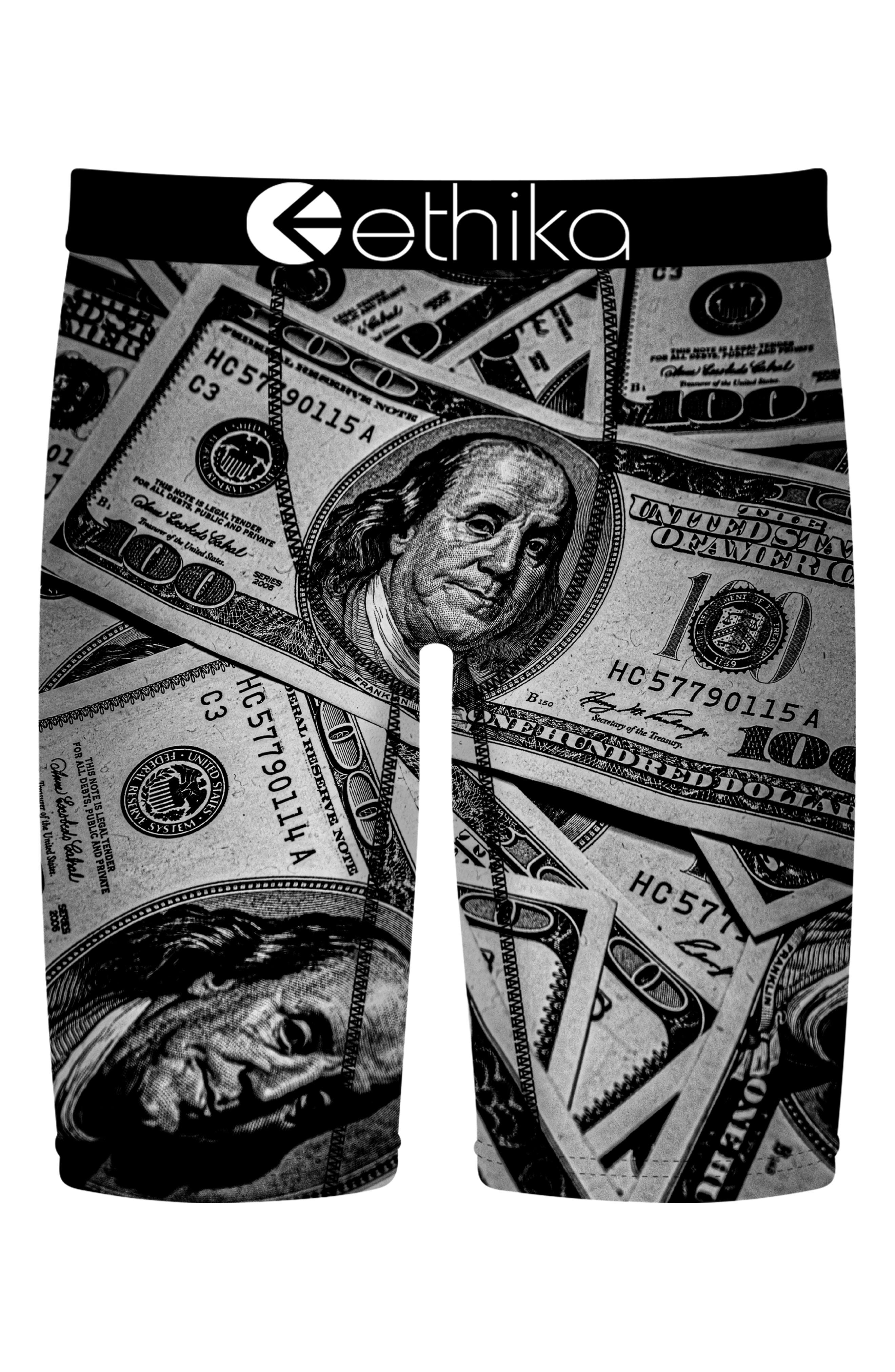 Piles of Benjamins elevate the value of every moment in kid-size boxer briefs made with a stretchy, supportive fit that won't roll or bunch. The soft waistband ensures stay-put comfort in any activity. 90% polyester, 10% spandex Machine wash, tumble dry Imported