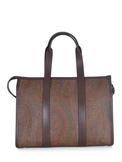 Etro bag made of Paisley cotton canvas, coated with a matte finish and double canvas in Brown color. Gold metal accents. Adjustable and removable leather shoulder strap. Zipper closure. Lined interior. Inner pocket. Dimensions 22.5 x 30.5 x 15 cm. 76% cotton, 24% polyester. Lining 100% polyester. Made in Italy.
