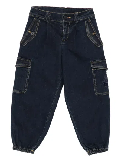 dark blue cargo pockets buttoned pockets elasticated cuffs embroidered logo pleated front