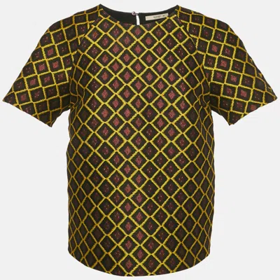 Pre-owned Brown/yellow Geometric Jacquard Blouse M