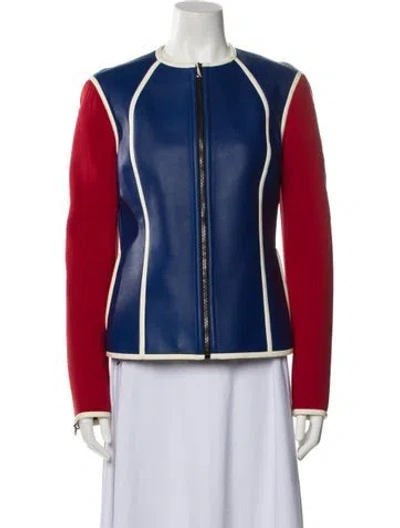 Pre-owned Colorblock Pattern Biker Jacket In Blue