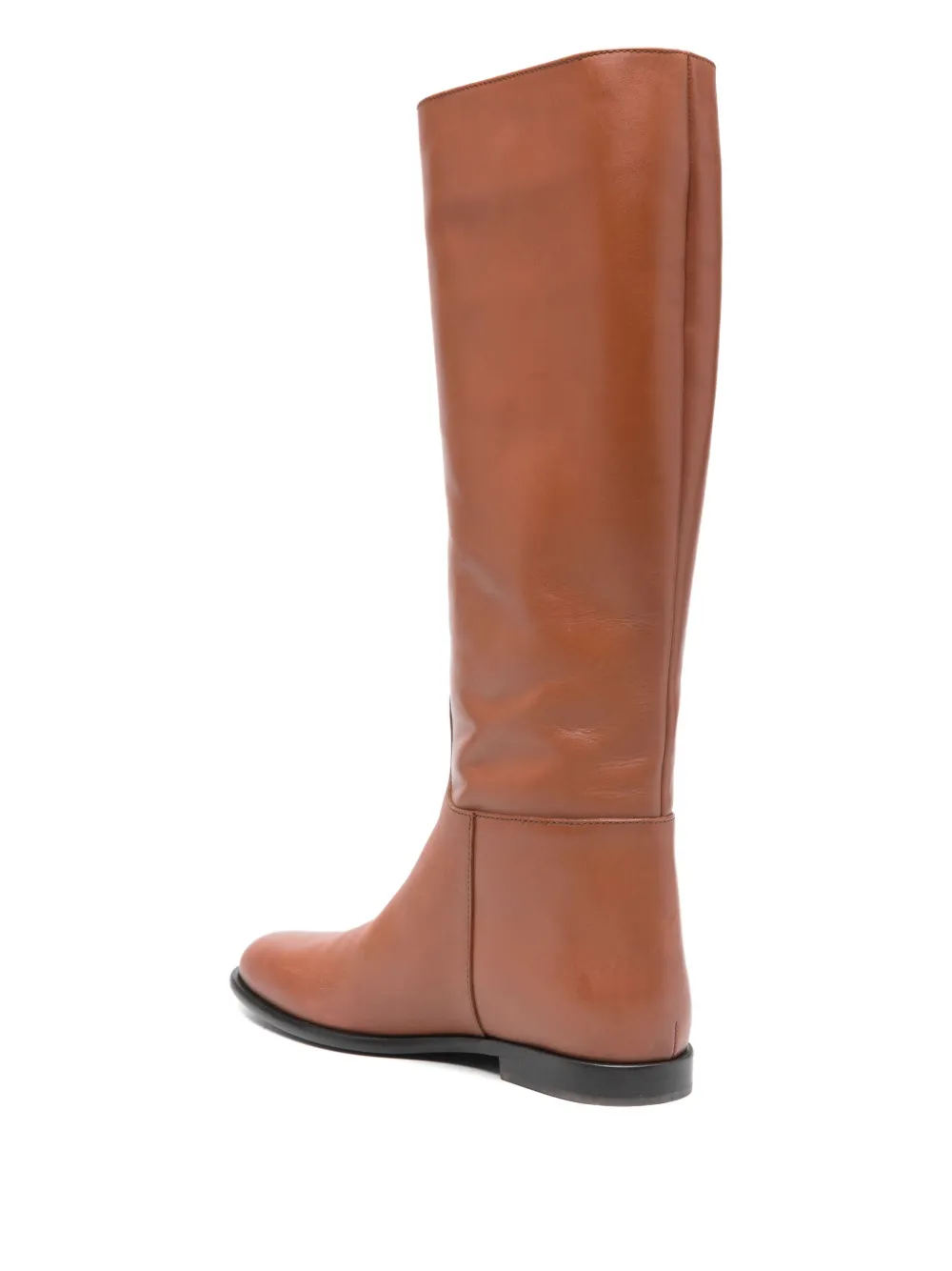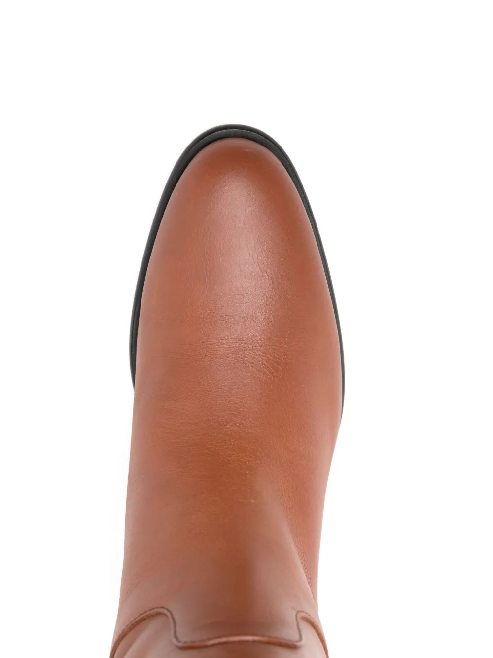 brown debossed logo leather almond toe block heel Condition: EXCELLENT. This previously owned item is in near-perfect condition with no signs of damage or use.