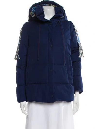 Etro Down Jacket Blue With Hood Stand Collar Zip Pockets & Zip Closure Designer Fit: Designed for a slim fit, those with a curvy figure may wish to take one size up. | Etro Down Jacket w/ Tags in Blue, Women's US0, IT36 | XS