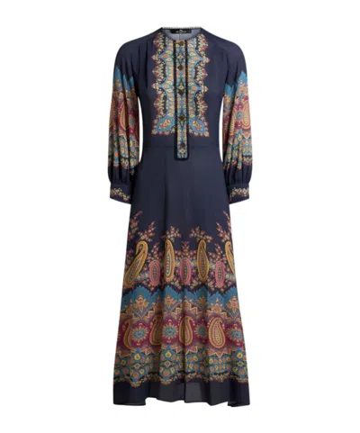 Material: 100% viscose. Crewneck. Long sleeves. Front half-way button closure. Paisley print. Flowy skirt. Kindly note that this product, as well as many other Etro items, is made using allover print and it falls differently on each garment, so the product you will receive may differ from the one in the picture