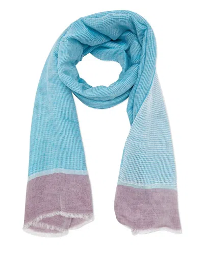 light blue grid pattern silk contrasting purple border Condition: GOOD. This previously owned and used item is in good condition with minimal signs of use. This may include fading of material or plating and scratches.