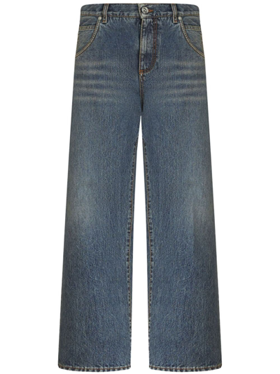 Wide leg cropped jeans Navy blue, cotton, distressed look, belt loops, classic five pocket design, wide leg, cropped fit and front button and zip fastening. Brand: Etro Composition: 100% Cotton MPN: 1W8069648250 AZZURRO