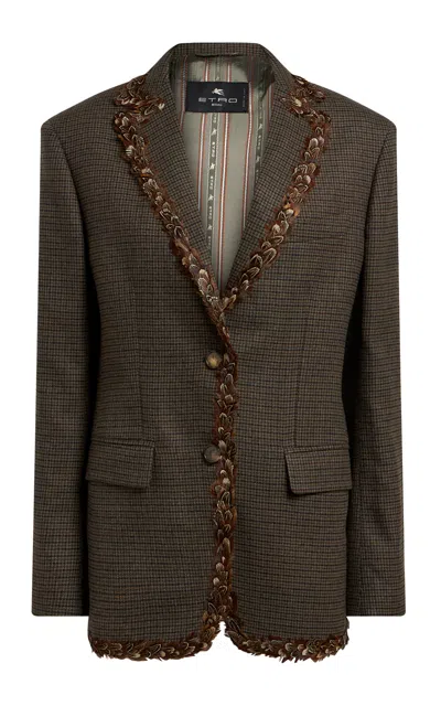 Etro Feather-Trimmed Wool Blazer - Moda Operandi