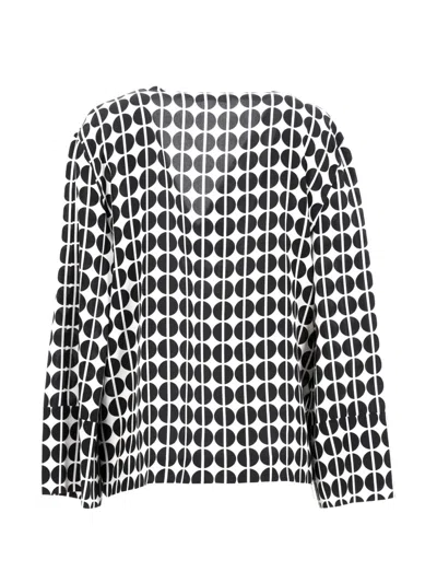 black and white polka dot pattern long sleeve silk V-neck Condition: EXCELLENT. This previously owned item is in near-perfect condition with no signs of damage or use.