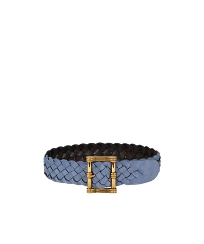 ETRO Reversible Woven Suede And Leather Belt In Blue