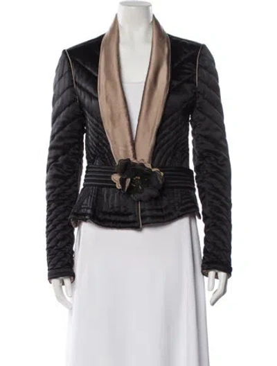 Etro Silk Biker Jacket Black & Neutrals Embroidered & Studded Accents Shawl Collar Hook and Eye Closure Designer Fit: Designed for a slim fit, those with a curvy figure may wish to take one size up. | Etro Silk Biker Jacket in Black/Neutrals, Women's US8, IT44 | M