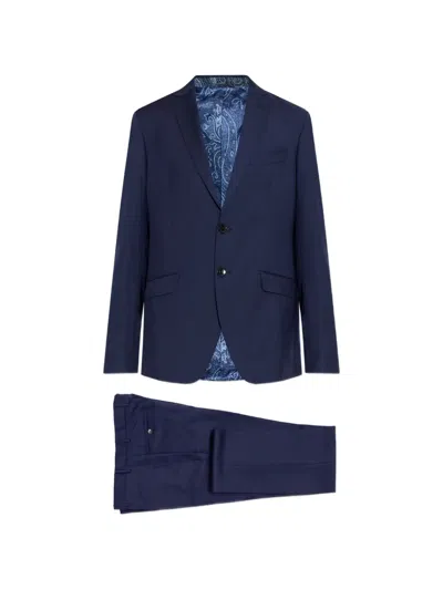 ETRO Single-breasted Wool Suit In Blue