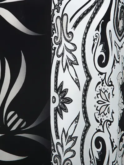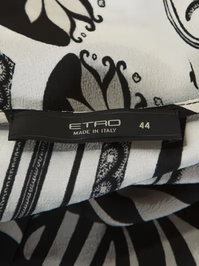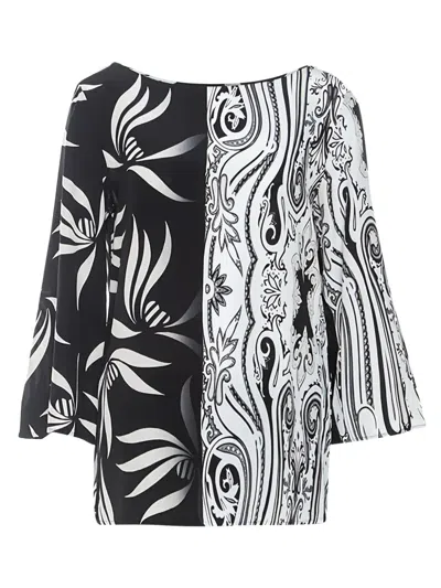 black silk two-tone design all-over graphic print boat neck wide sleeves straight hem Condition: GOOD. This previously owned and used item is in good condition with minimal signs of use. This may include fading of material or plating and scratches.