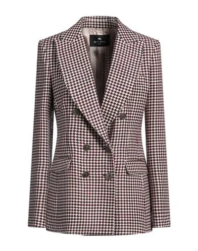 This stunning jacket by Etro showcases a striking houndstooth pattern in white,red and blue. It features elegant peak lapels and a sophisticated double-breasted front. The jacket is adorned with logo-embossed buttons that highlight the iconic Pegaso motif in gold-tone, blending classic design with modern flair. Practical elements include two front flap pockets, long sleeves with buttoned cuffs, and a central rear vent, ensuring a tailored silhouette for any occasion.Specifications:- Houndstooth pattern in white and blue- Peak lapels- Double-breasted front- Logo-embossed buttons with Pegaso motif- Two front flap pockets- Long sleeves with buttoned cuffs- Central rear vent