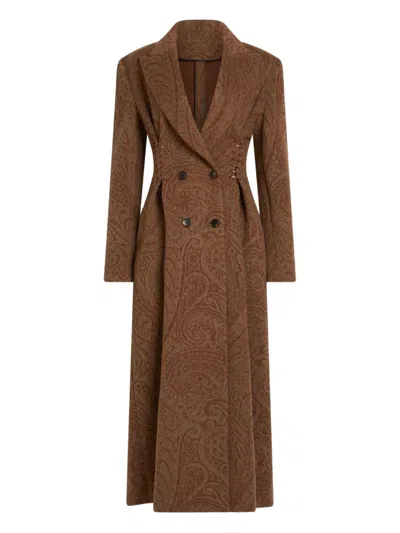 ETRO Tailored Long Coat Featuring Paisley Design In Brown