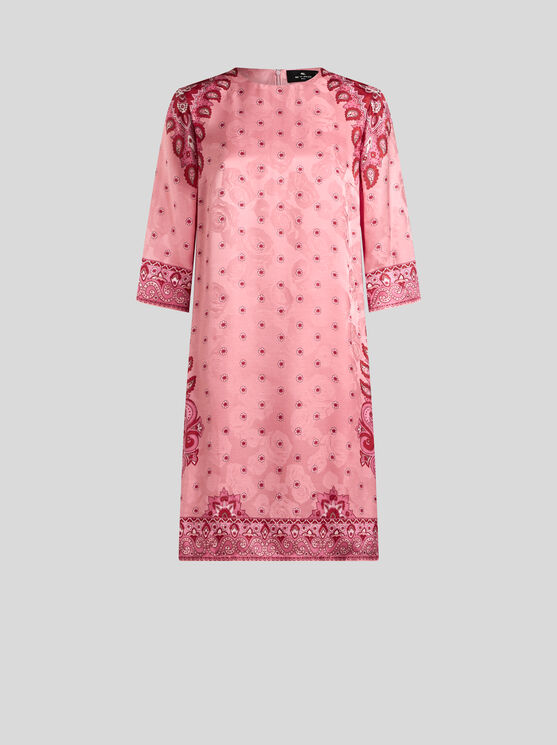 ROSE PINK CONCEALED REAR HOOK AND ZIP FASTENING CREW NECK THREE-QUARTER LENGTH SLEEVES TWO SIDE INSET POCKETS | Etro Women's Silk Blend Elegant Dress in Pink | Size 48 | WRHA0070