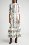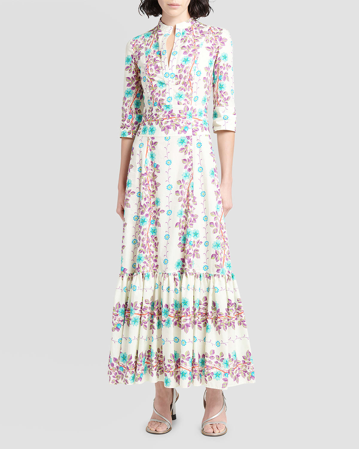 ETRO Vine Floral 3/4-sleeve Cotton Midi Dress In Print Floral White