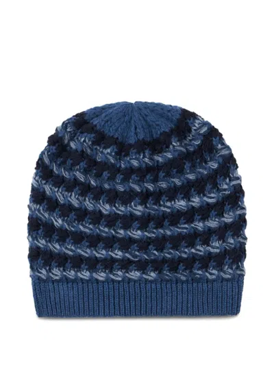 dark-blue wool blend houndstooth pattern textured knit ribbed brim folded cuff