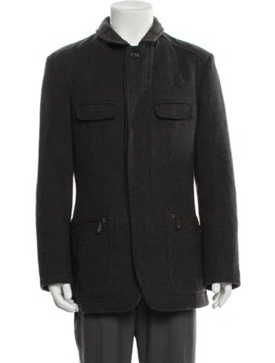 Etro Wool Utility Jacket Grey Satin Lining Collar Zip Pockets Fit: Outerwear by Etro typically fit true to size. | Etro Wool Utility Jacket in Grey, Men's M