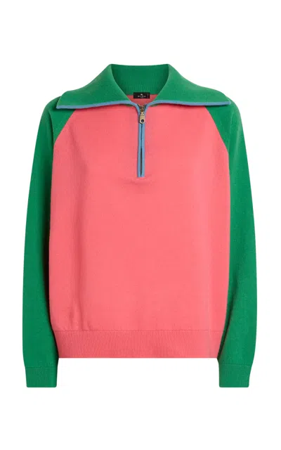 ETRO Zipped Wool-cashmere Pullover In Multi