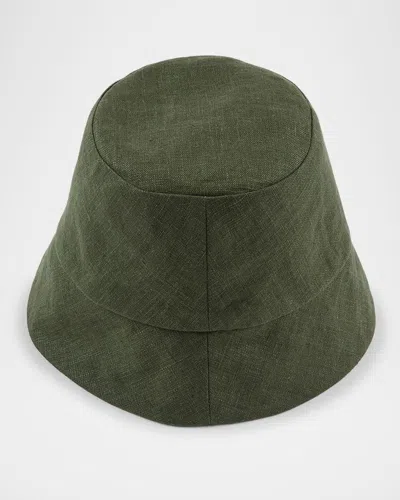 EUGENIA KIM Ally Linen Packable Bucket Hat In Green