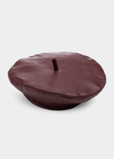 Eugenia Kim "Carter" Bordeaux lamb leather beret with stem Approx. 9.9"Dia Brim width 2.5", head size: 56" Spot clean Imported