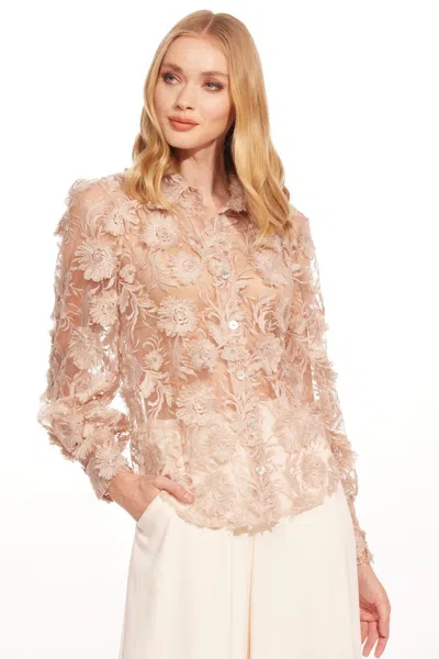 This collared shirt features a lightweight sheer fabric with 3D floral embroidery, finished with button through fastening and long cuffed sleeves. Collared neck Button down Long sleeves 100% Polyester Made in USA