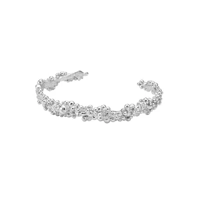 A deceptively simple piece, the Céleste Deux bracelet has a softly bubbled surface which creates an organic form. The rhodium plated recycled silver bracelet is perfect for stacking with other bracelets and has a slightly adjustable opening so it fits comfortably on the wrist. XS: 13-15 cm wrist circumferenceM: 15-17 cm wirst circumferenceWidth of the bracelet is 0,5 cmHandmade in Budapest