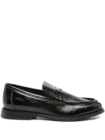 Loafers in black leather, almond toe, slip on, penny slot, stitching detail, rubber outsole, hide 250 mm, 100% leather, Made in Italy