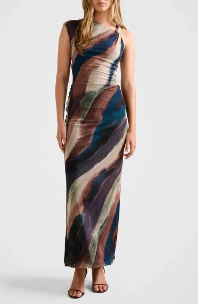 EVER NEW Karina Knotted One Shoulder Mesh Maxi Dress In Multi