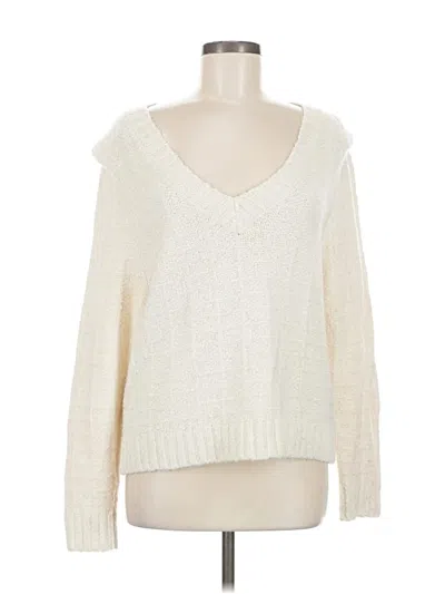 Evereve Pullover Sweater, Size: Medium. Item Details: Ivory, Plunge Neckline, Long Sleeve, Frayed Edges, Women's Tops
