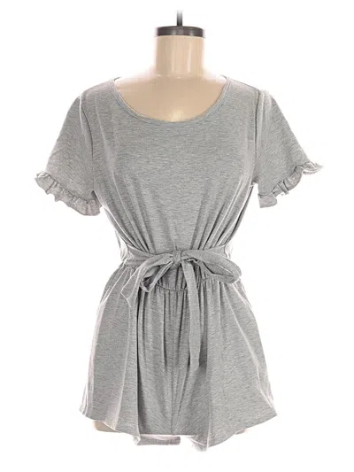 Everly Romper, Size: Medium. Item Details: Gray, Crew Neck, Micro, Short Sleeve, Ruffles, Women's Dresses, Polyester/Rayon/Spandex