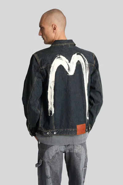 Denim Jackets in blue denim, collar, long sleeves, frontal buttoning, flap pockets, contrasting stitching, 100% cotton, Made in China, the models is 1.91 and wears size L