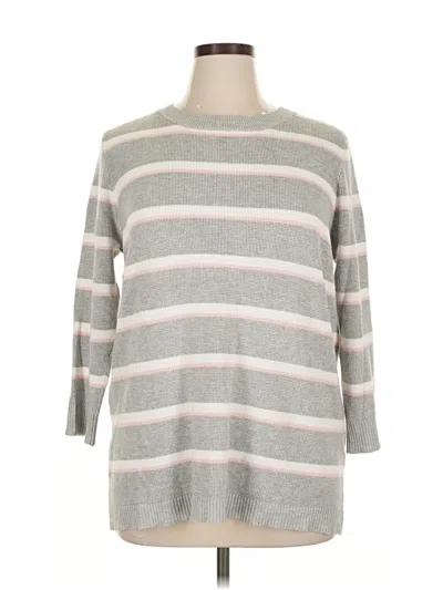 Evolution by Cyrus Pullover Sweater, Size: 1X. Item Details: Gray, Stripes Pattern, Boatneck, 3/4 Sleeve, Women's Tops, Rayon/Nylon