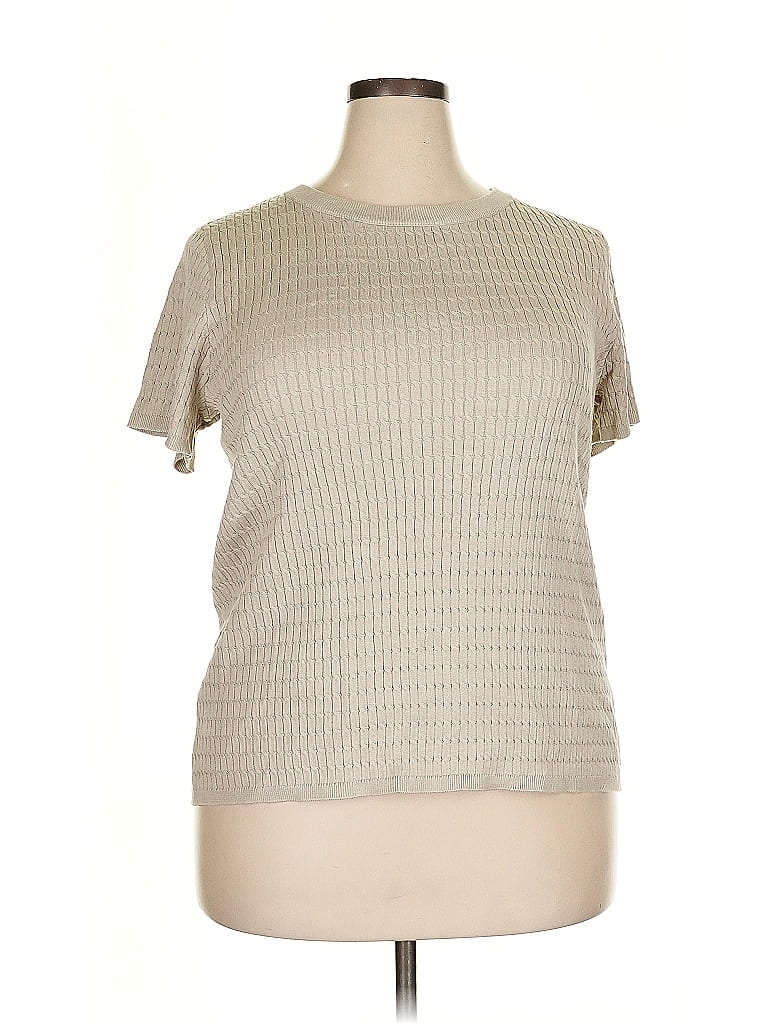 Evolution Cardigan, Size: 2X. Item Details: Tan, Mock Neckline, Short Sleeve, Women's Sweaters & Sweatshirts, Rayon/Nylon
