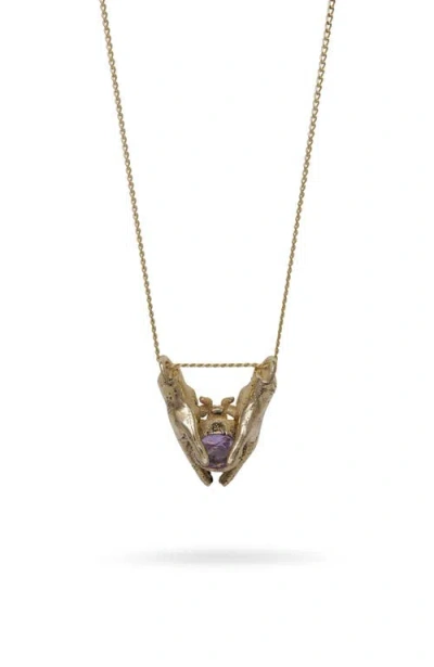 9ct Gold pendant holding a round pink sapphire gift, presented on a 20 inch chain 9ct Gold Round Pink Sapphire 0.48ct Hallmarked