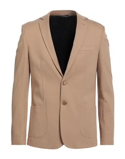 EXIBIT Man Blazer Camel Size 38 Viscose, Polyamide, Elastane In Sand