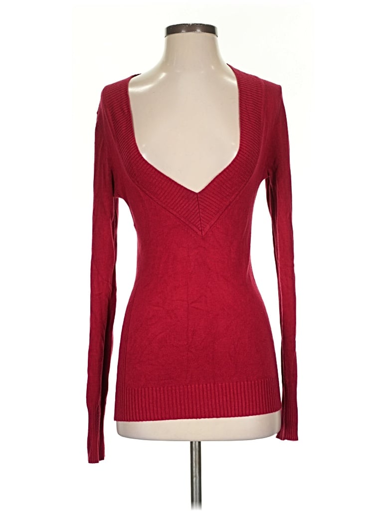 Express Design Studio Pullover Sweater, Size: Small. Item Details: Red, Plunge Neckline, Long Sleeve, Women's Tops