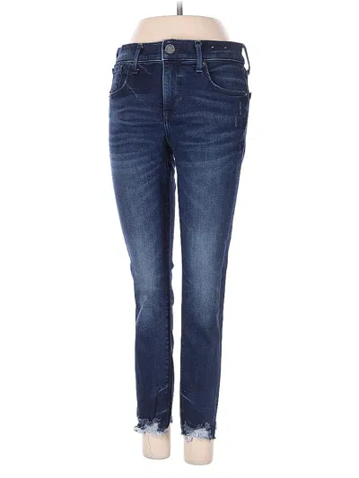 Express Jeans, Size: 2. Item Details: Blue, Solid Pattern, Dark Wash, Skinny Leg, Cropped, High Rise, Women's Bottoms, Cotton/Polyester/Spandex