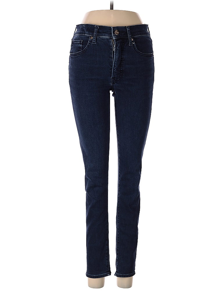 Express Jeans, Size: 4. Item Details: Blue, Solid Pattern, Dark Wash, Skinny Leg, Cropped, Mid/Reg Rise, Women's Bottoms, Cotton/Rayon/Polyester