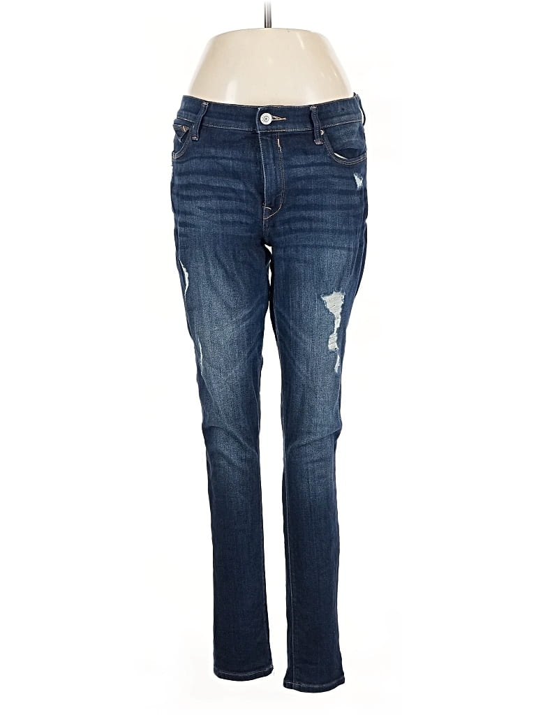 Express Jeans, Size: 10. Item Details: Blue, Solid Pattern, Dark Wash, Skinny Leg, Regular, Boyfriend, Mid/Reg Rise, Women's Bottoms, Cotton/Polyester/Spandex