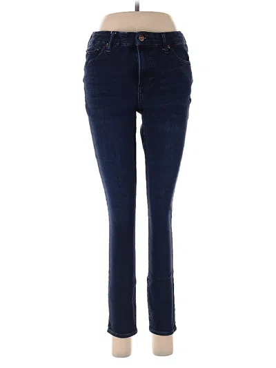 Express Jeans, Size: Medium. Item Details: Blue, Stripes Pattern, Dark Wash, Skinny Leg, Cropped, Mid/Reg Rise, Women's Bottoms, Cotton/Spandex