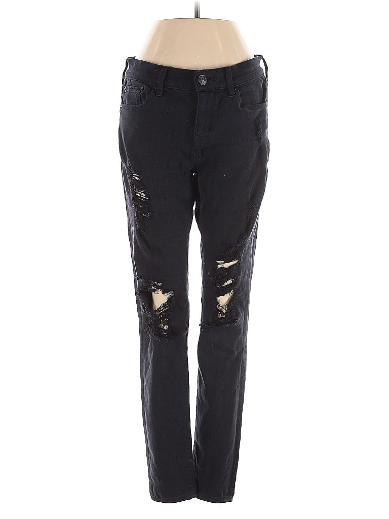 Express Jeans Jeans, Size: 2. Item Details: Black, Stars Pattern, Distressed Wash, Boyfriend, Cropped, Mid/Reg Rise, Women's Bottoms, Cotton/Polyester