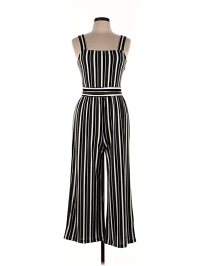 Express Jumpsuit, Size: Medium. Item Details: Black, Stripes Pattern, Square Neckline, Boot Leg, Sleeveless, Women's Dresses