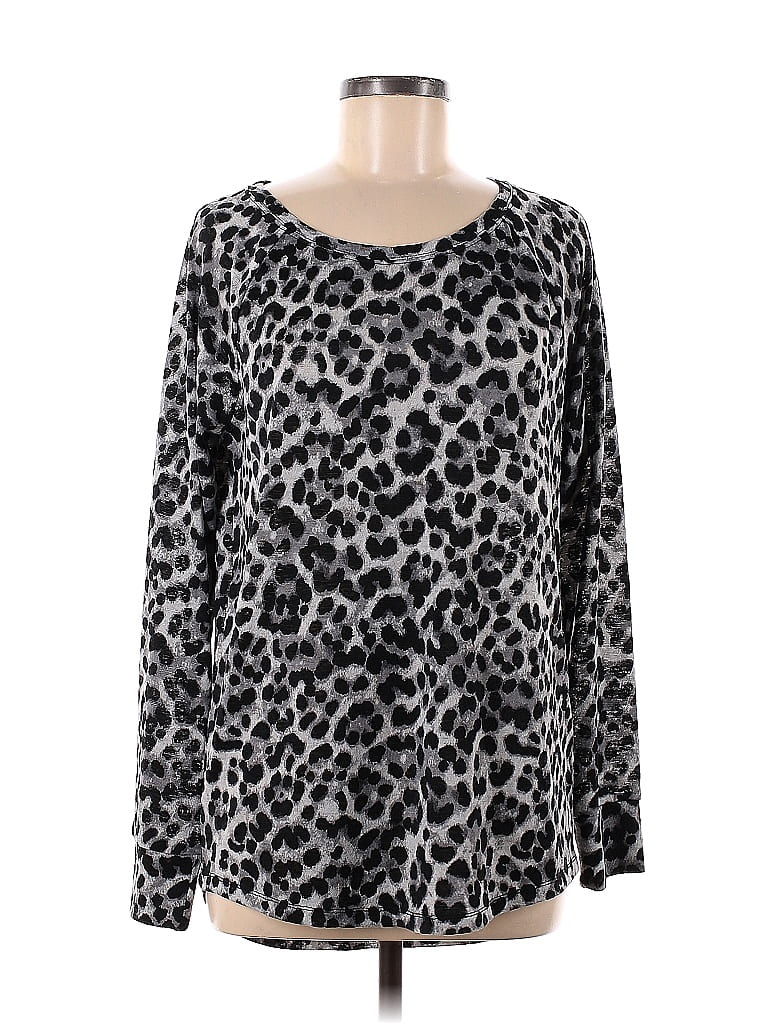 Express Pullover Sweater, Size: Medium. Item Details: Silver, Animal Print Pattern, Scoop Neck, Long Sleeve, Women's Tops, 100% Polyester