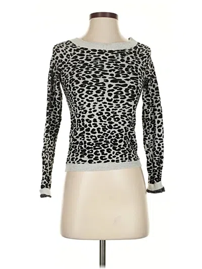 Express Pullover Sweater, Size: X-Small. Item Details: Silver, Animal Print Pattern, Ruffles Neckline, Long Sleeve, Women's Tops, Rayon/Nylon/Spandex